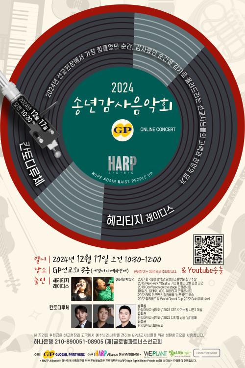 HARP프로젝트에 직간접적으로 참여할 수 있도록 가치와 사역을 소개하고 후원을 요청하기 위해 HARP에 참여하는 수준높은 아티스트들과 전문기획자들이 준비하는 문화예술공연을 개최합니다. 공식주최하는 HARP CONCERT 뿐만 아니라 지역교회의 지역사회초청공연으로도 개최할 수 있습니다.